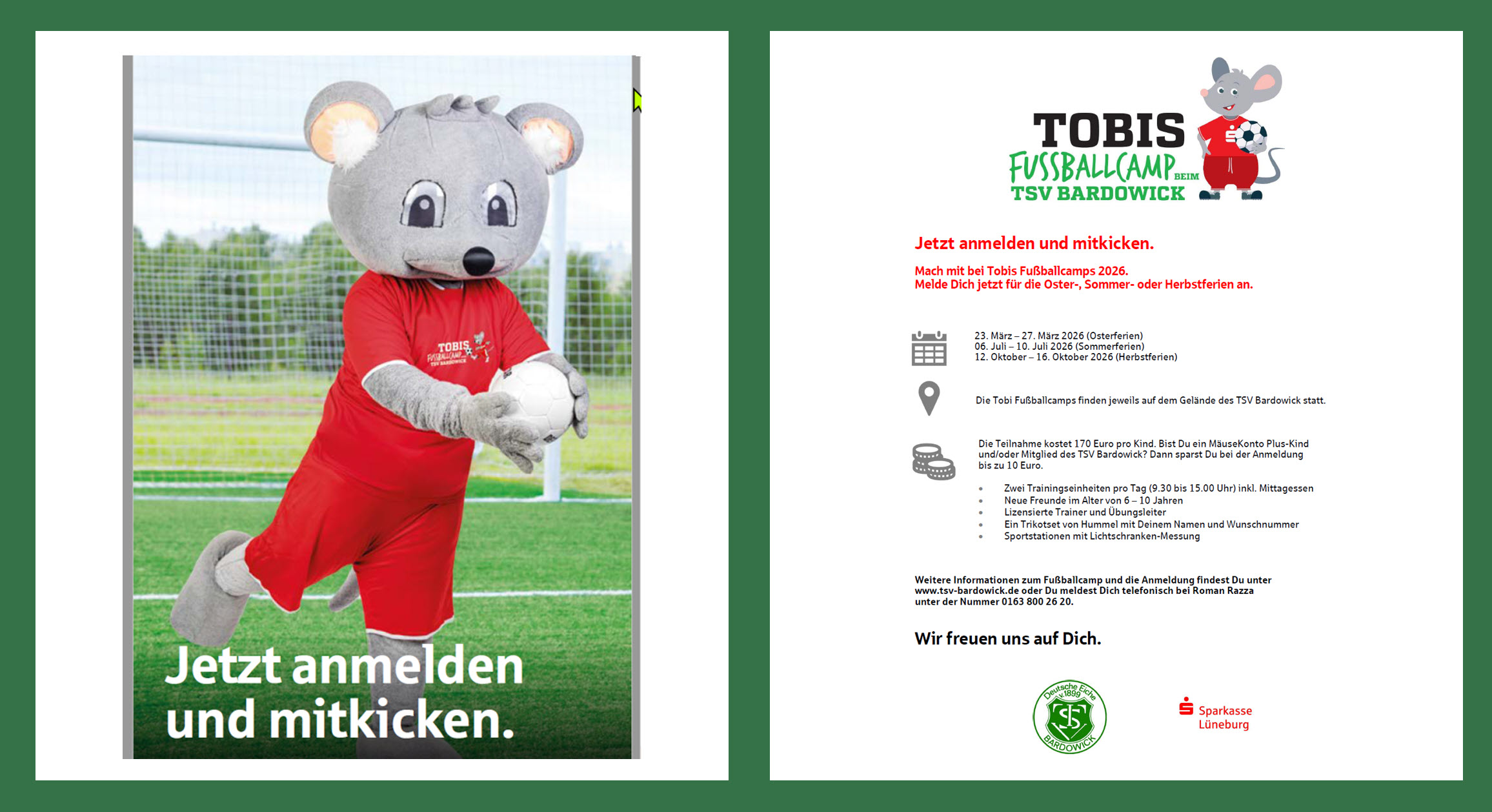 Anmeldung Tobis Fußballcamp Durch Klicken auf eine der Schaltflächen „TOBIS Fußballcamp BEIM TSV BARDOWICK“ gelangt man zur Anmeldung für das Fußballcamp.