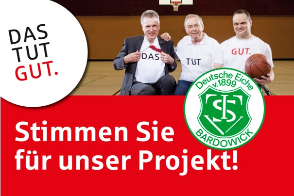 der TSV Bardowick hat eine Projektidee bei der Förderinitiative DAS TUT GUT. der Sparkasse Lüneburg eingereicht. Wir wollen das Flachdach unseres Bettentraktes nachhaltig renovieren, denn dort regnet es bei stärkerem Regen rein. Damit wir unsere Projektidee umsetzen können, benötigen wir möglichst viele Stimmen. Bitte geben Sie uns Ihre Stimme bis zum 17. August!