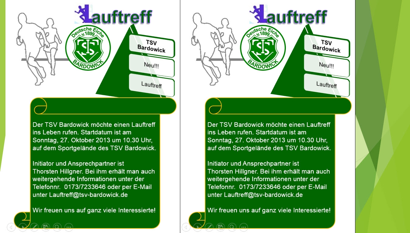 Der TSV Bardowick möchte einen Lauftreff ins Leben rufen. Startdatum ist am Sonntag, 27. Oktober 2013 um 10.30 Uhr, auf dem Sportgelände des TSV Bardowick.