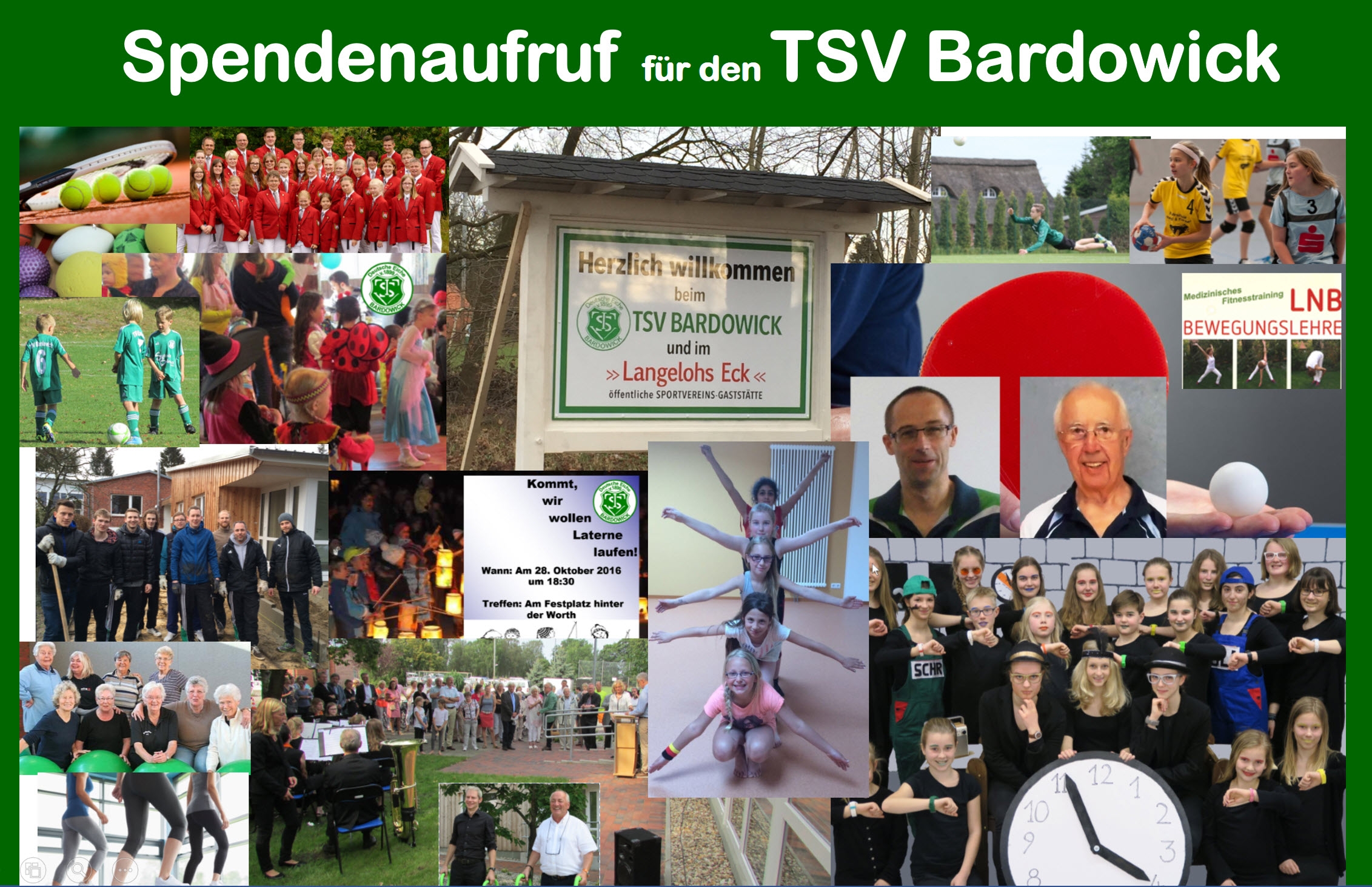 Die Ausstattung unseres im vergangenen Jahr fertig gestellten Sport- und Fitnessraums, der Pächterwechsel, sowie diverse unvorhersehbare einzelne Faktoren belasten den Haushalt des TSV Bardowick in erheblichem Maße. Der Vorstand hat mittlerweile ein umfangreiches Sparpaket beschlossen, das aber erst im Laufe der Zeit greifen wird. In zahlreichen Gesprächen erklärten viele Mitglieder und Fans ihre Bereitschaft, dem Verein finanziell unter die Arme zu greifen. Sie zeigen damit, was ihnen ihr Verein mit den zahlreichen Angeboten bedeutet. Die Vereinsführung des TSV Bardowick bedankt sich herzlich für diese Anteilnahme! Aufgrund der zahlreichen Nachfragen möchten wir daher darum bitten, diesbezügliche freiwillige Spenden für den Verein auf folgendes Konto zu überweisen: