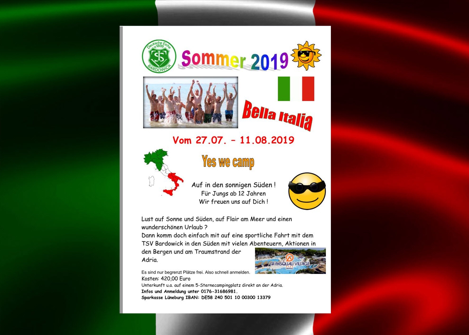 Der TSV Bardowick organisiert in den Sommerferien 2019 wieder eine Reise nach Italien für Jungs ab 12 Jahren.