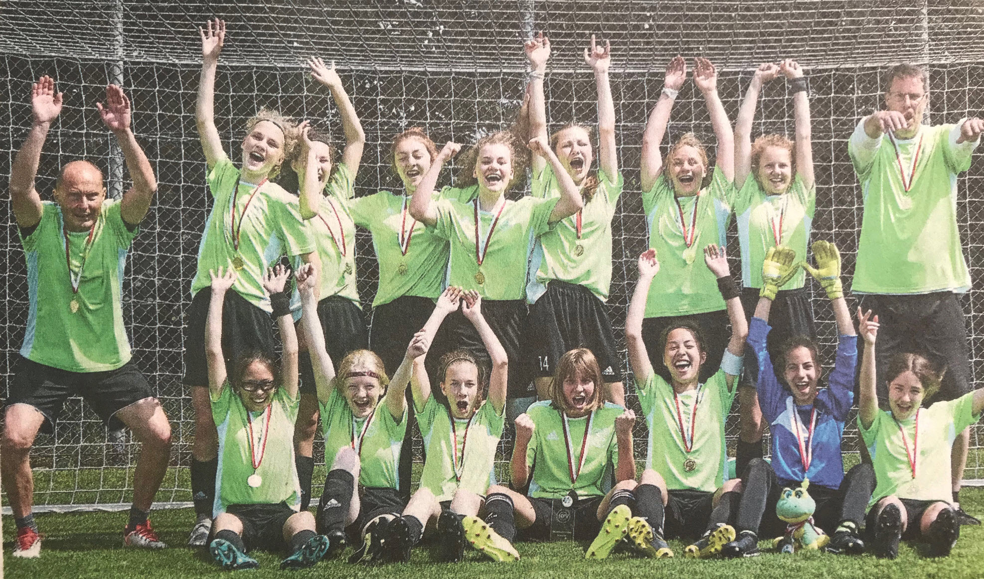 „Das war ein überzeugender Sieg“, fand Saucke. Sophia Schinkewitsch hatte den TSV in Führung geschossen, Hillersee mit seiner einzigen Chance ausgeglichen. Nach der erneuten Führung durch Marly Saucke war der Finaleinzug perfekt. Die Bardowickerinnen ließen den Tag mit einem Schwimmbadbesuch ausklingen, gegen Mitternacht wurde geschlafen, um fit für das Finale am nächsten Tag zu sein. Und im Endspiel legten die Domstädterinnen noch eine Schippe drauf, zeigten, dass sie das spielstärkste Team des Turniers waren. Problem: der Ball wollte nicht ins Tor. So ging der TuS Büppel nach einem schönen Konter durch Lynn Pieritz in Führung. Als Sophie Hoheisel vier Minuten vor Schluss per Elfmeter das 2:0 erzielte, dachte sich das Bardowicker Trainerteam, dass es gut ist, so das Turnier auch als Zweiter zu beenden. „Aber die Mädchen haben an sich geglaubt“, berichtete Saucke. Und dass, obwohl sich drei Bardowickerinnen verletzt auf den Beinen hielten. Zwei Minuten vor dem Ende schaffte Marly Saucke den Anschlusstreffer und nur eine Minute später traf Nina Bichler mit einem herrlichen Schlenzer zum umjubelten Ausgleich. „Das kann man sich gar nicht ausdenken“ witzelte Saucke. „Damit hatten wir den psychologischen Vorteil auf unserer Seite.“